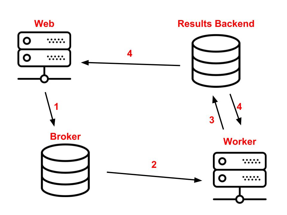 In the previous examples, we have treated the [.code-inline]delay[.code-inline] and [.code-inline]get[.code-inline] functions as a single action, but in reality, they serve distinct purposes. The [.code-inline]delay[.code-inline] function places the task in the queue and returns a promise that allows monitoring of the task's status and retrieval of its result once it's ready. On the other hand, calling [.code-inline]get[.code-inline] on this promise blocks the execution until the result becomes available. However, we have missed an essential piece of the architecture by not mentioning the results backend.