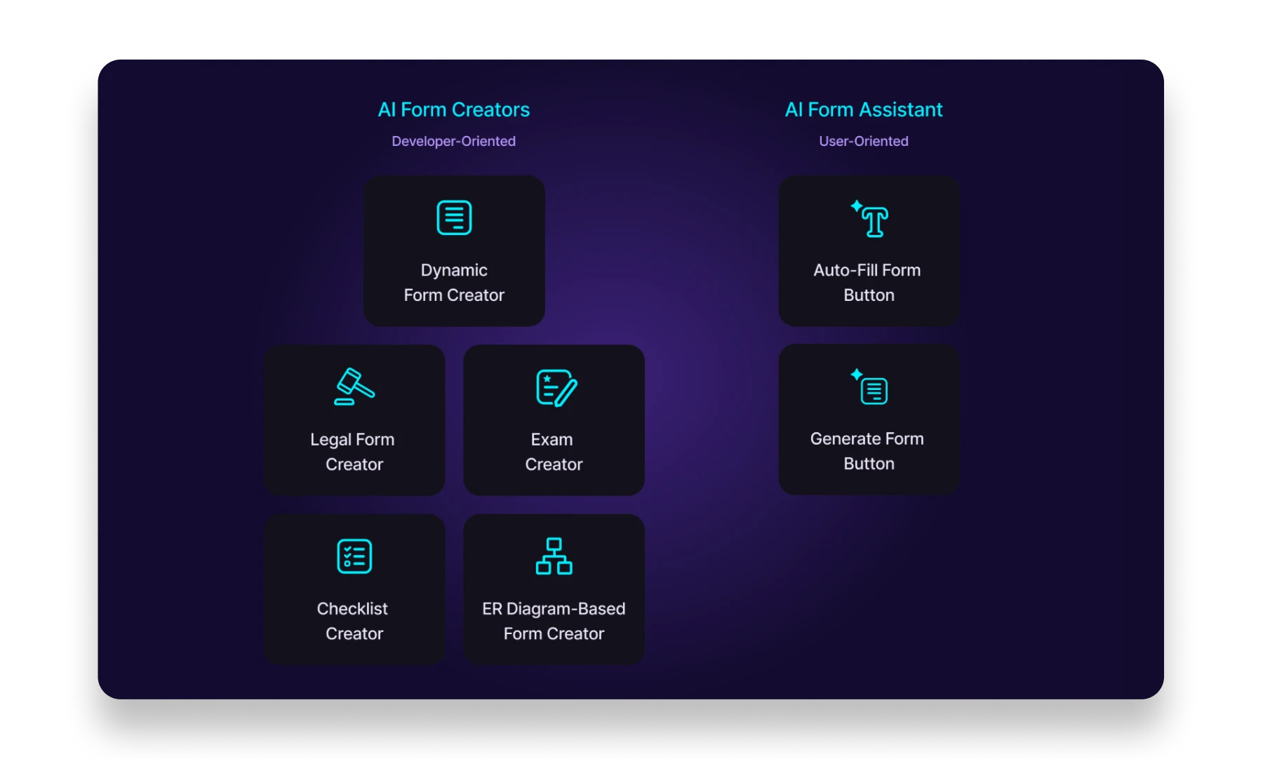 From dynamic forms to content generation and workflow automation, each tool was designed to simplify real-world development tasks. Whether you're handling forms, generating legal documents, or integrating intelligent UI components, GPTBundle helps you move faster without sacrificing flexibility or control.