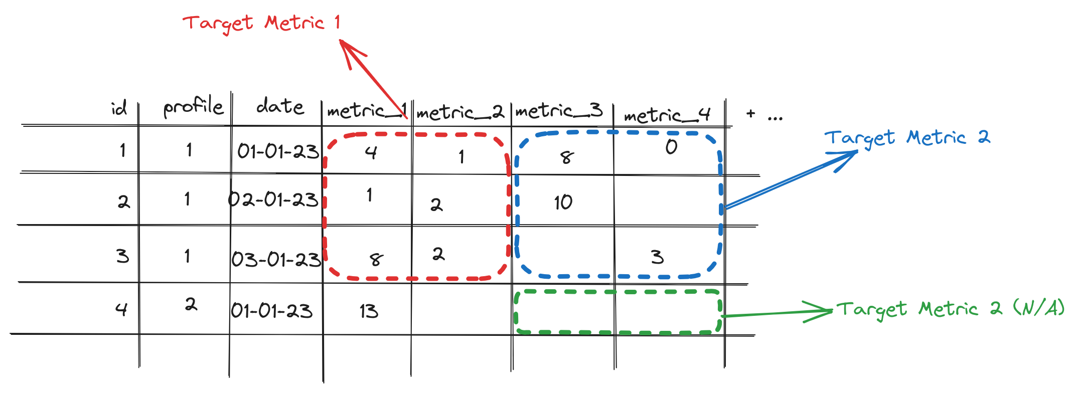 - Metrics are source metrics which can be Null
